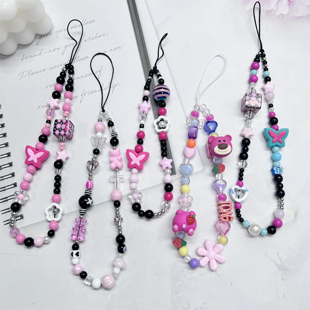 オリジナルホットガール y2k ビーズ携帯電話チェーンブラックピンククール原宿 ccd ハンギングチェーンたまごたまオーナメントクリエイティブギフト