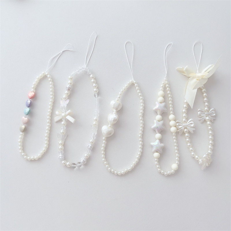 オフホワイトビーズ携帯電話チェーン五芒星ラブリボン携帯電話ストラップアクリル携帯電話ケースペンダント卸売