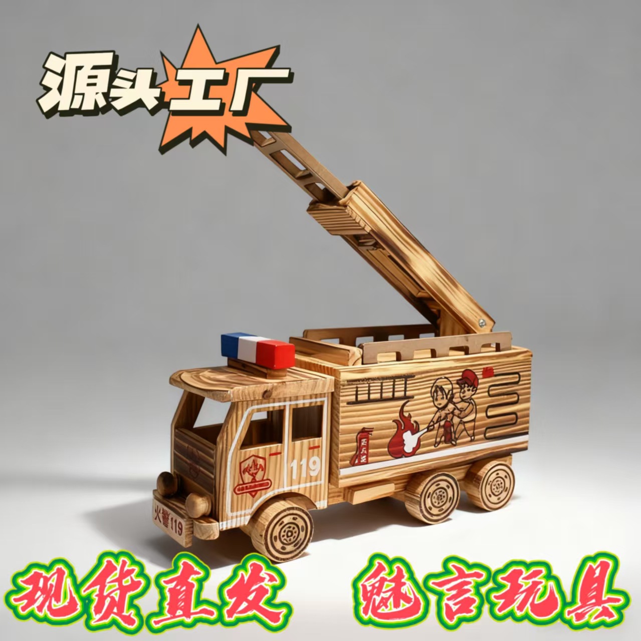メーカー卸売り子供模型玩具車木製救助消防車家庭装飾品