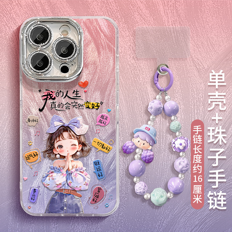 人生は良くなりますガールブレスレット Apple 16e フェザーガーゼ携帯電話ケース 13promax かわいい 15 ハイエンド 14