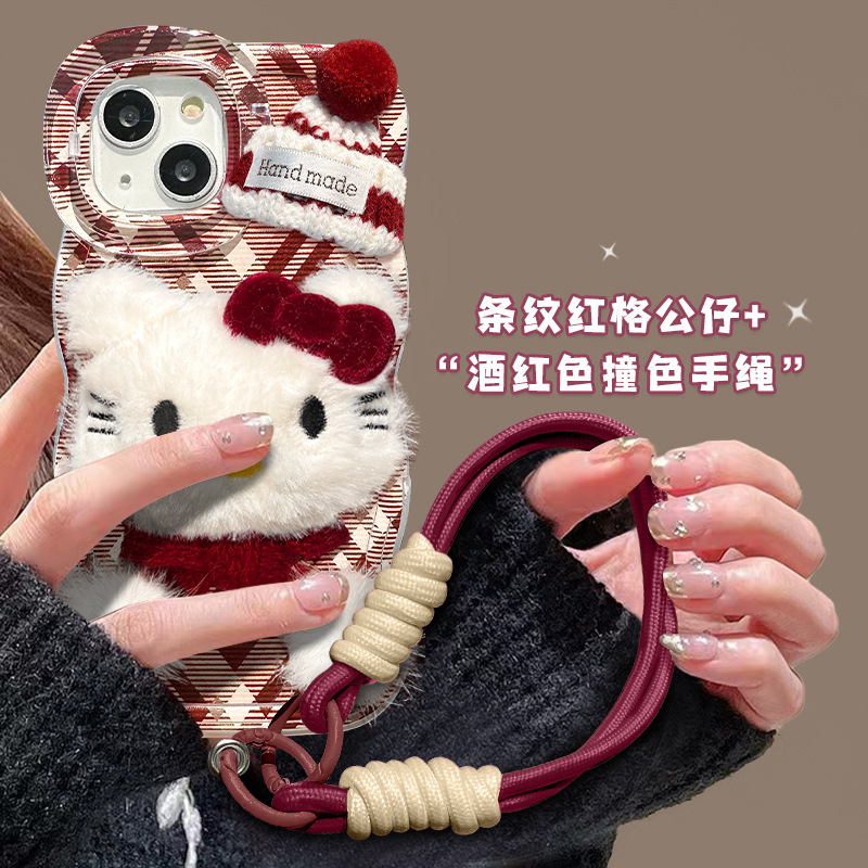 ぬいぐるみKitty猫公仔ストラップはアップル16携帯ケース15かわいい転倒防止14ダブルスタンドXクリスマス