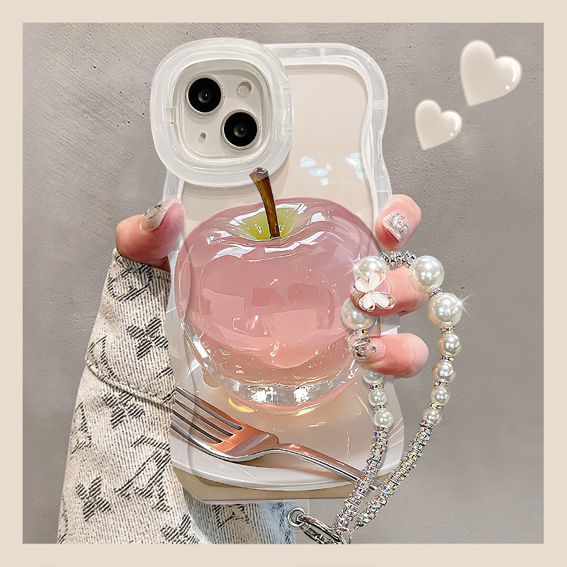 クリスタルアップルブレスレットはiphone16ダブルスタンドの携帯ケース13promax透明シリカゲル14小衆15を適用します。