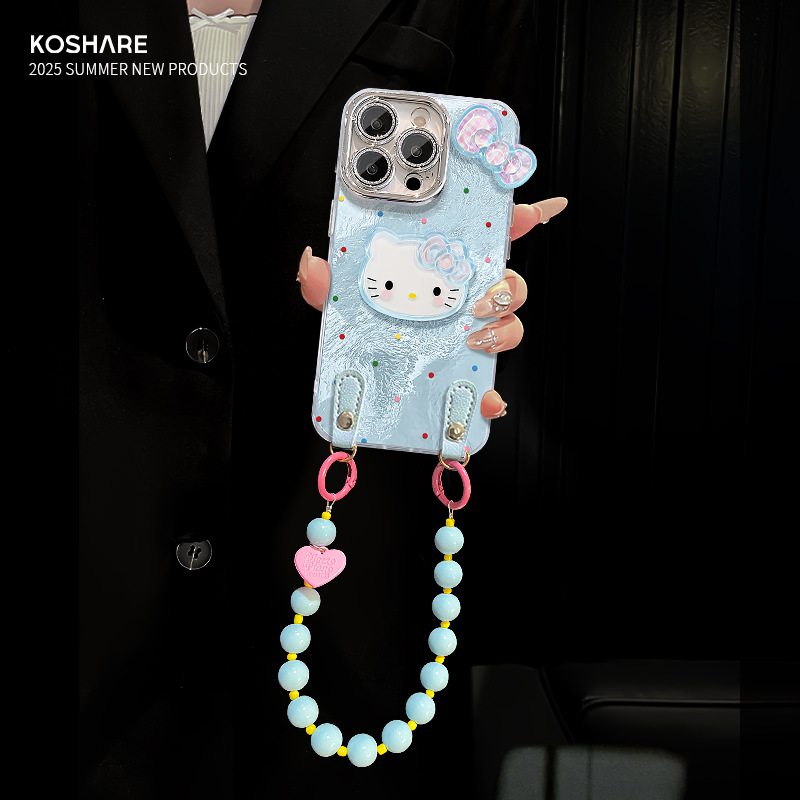 水玉模様の kt 猫人形吊りチェーン Apple 16 携帯電話ケース 13promax かわいい漫画 15 ハイエンドの女の子に適しています