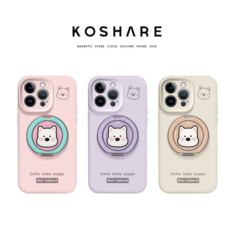 Apple 16promax 携帯電話ケース 13 液体シリコーン 15 かわいい落下防止 14 肌に優しいに適した子犬磁気ホルダー