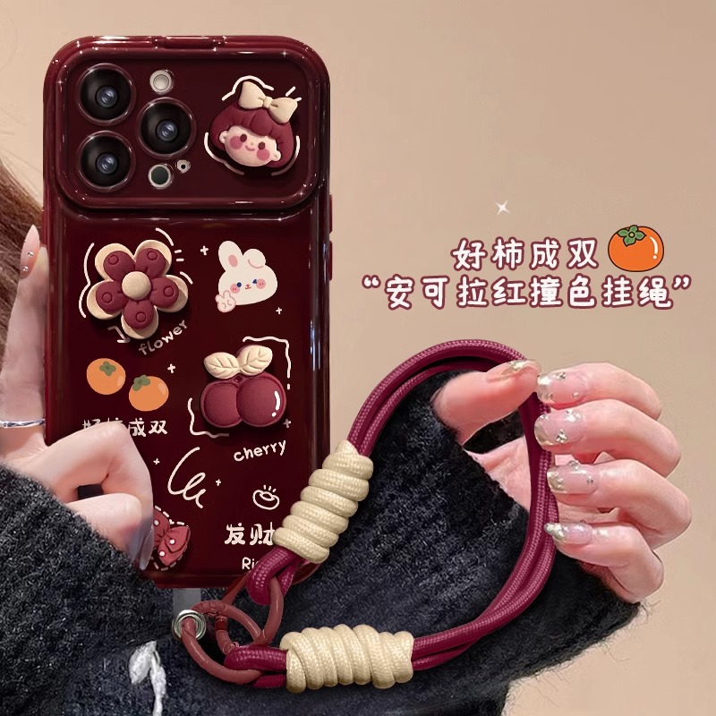 喜びに満ちたストラップはリンゴ16PRO携帯ケース新年15シリコンゴム小羊皮14精孔転倒防止7/8を適用した