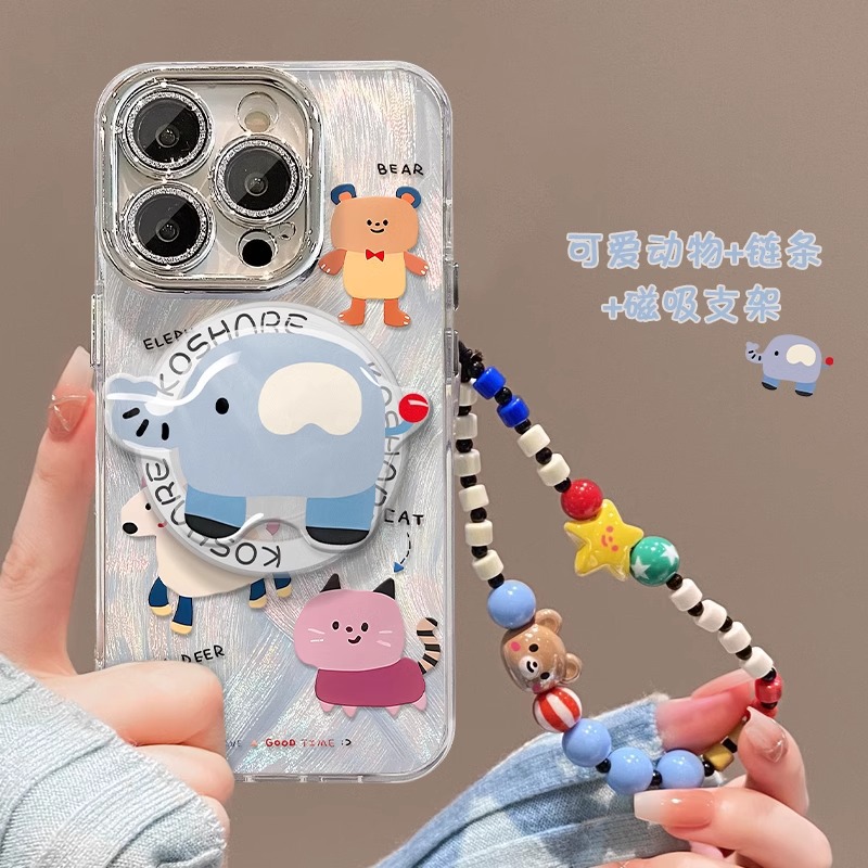 アニメ動物磁気吸引ブラケットチェーン適用リンゴ13羽糸携帯ケース14proはレンズフィルム12/11を持っている