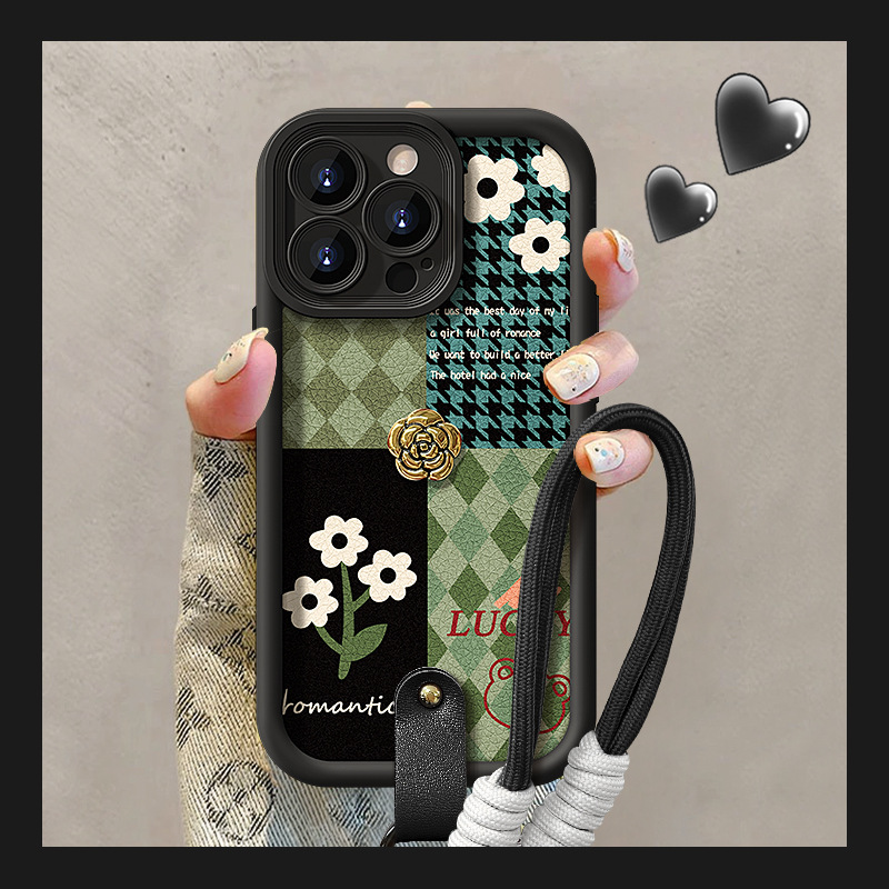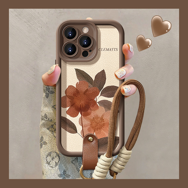 油絵水彩花ストラップはリンゴ16PRO小羊皮携帯ケース15/14plusシリコンゴム転倒防止13女を適用している