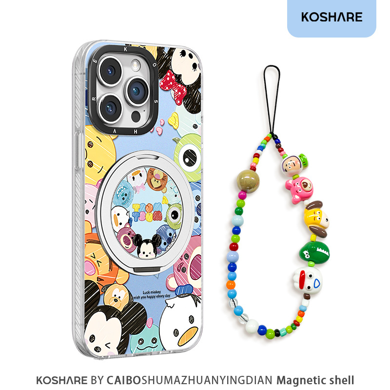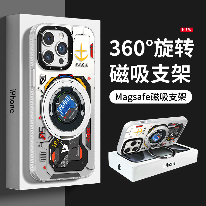 かわいい漫画風支点磁気スタンド、Apple 16携帯電話ケース、17promax、元気彩銀14、高級感に最適