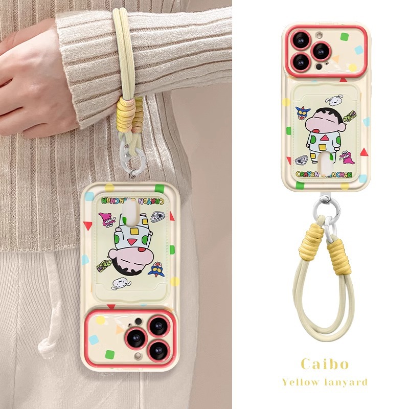 しんちゃんカードバッグストラップはアップル15携帯ケースiphone14proソフトシリコン13カバー鏡8かわいい