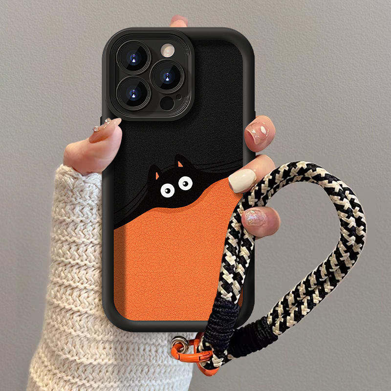 黒い猫はリンゴ16proの羊皮の携帯ケースを適用して、華はOPPO米vivoの柔らかいシリカゲル15/14である