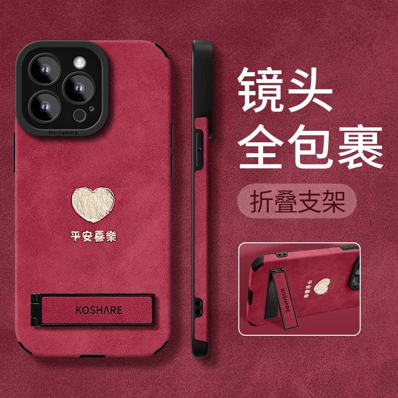 何事も愛のスタンドはリンゴ16pro新年の携帯ケース15を適用して毛皮14シリコンをひっくり返して転んで7/8を防ぐ