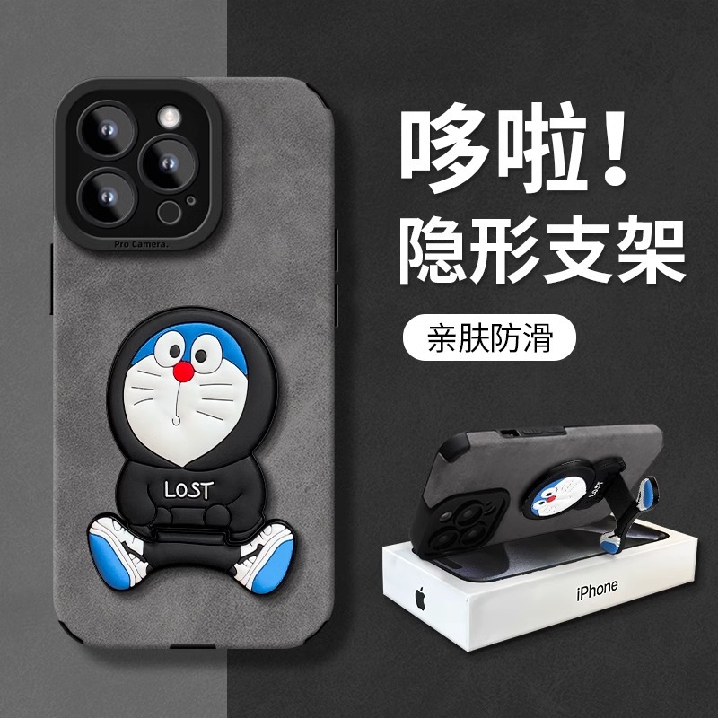かわいいドラえもんスタンドはリンゴ16pro携帯ケース15の毛皮14フロスト13柔らかいシリコンゴム12精孔xを適用する