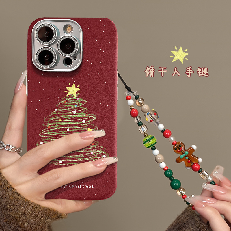 クリスマスツリーのブレスレットはリンゴ16pro赤い携帯ケース15精孔皮紋14全包転倒防止レンズ膜を適用している