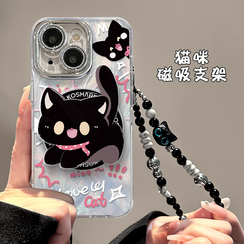 かわいい猫のマグネットホルダーはアップル16羽糸携帯ケース15promax高級感14ブレスレット13ハードを適用します。