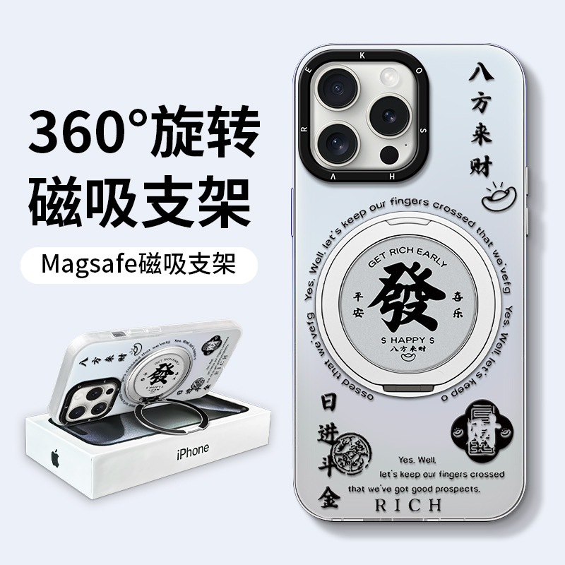 八方来財折り畳みスタンドはリンゴ16国風携帯ケース13promax元気カラー銀14マグネット15を適用する