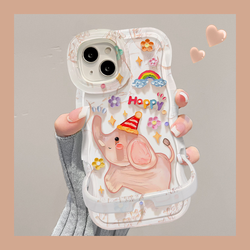 アップル15透明携帯ケースiPhone14pm油絵花小象13波辺見えないダブルスタンドを適用