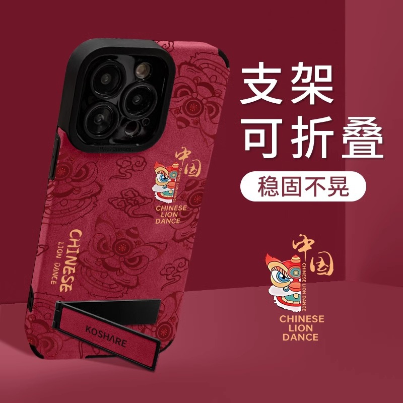 国潮覚醒ライオンスタンドはリンゴ16pro新年携帯ケース15回転毛皮14精孔転倒防止13シリコンゴム8を適用した