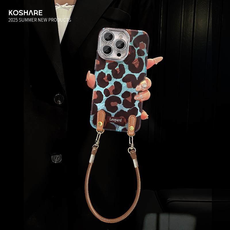 レトロなヒョウ柄のストラップ Apple 16promax 携帯電話ケース 13 ハイエンド 14 オールインクルーシブ落下防止 Xiaomi 15 女性に適しています