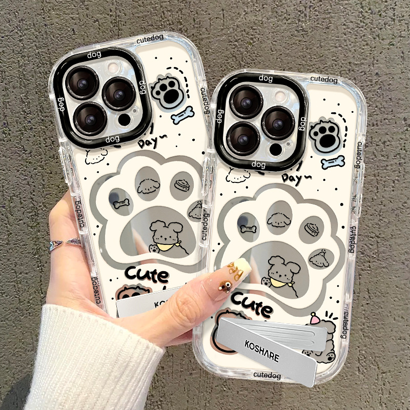 かわいい犬の足型スタンド付きiPhoneケース、iPhone15/14/13PRO対応、人気商品、精密穴あきミラー仕上げ、耐衝撃、iPhone16/17対応