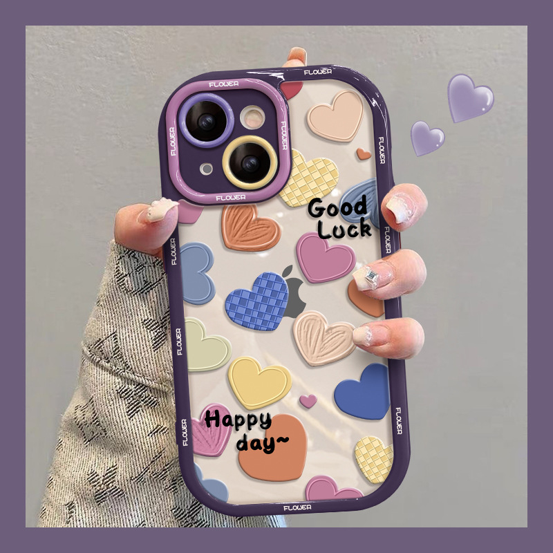 Apple 16、iPhone 15 Pro Max、iPhone 13/17対応、透明シリコン製、フルスクリーン、カラフルなハート柄、耐衝撃性