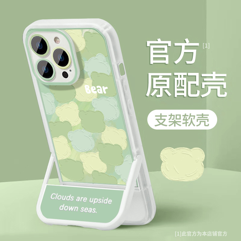 Ins油絵熊は16promaxアップルの携帯ケースiphone15スタンド14/13シリコン12を適用