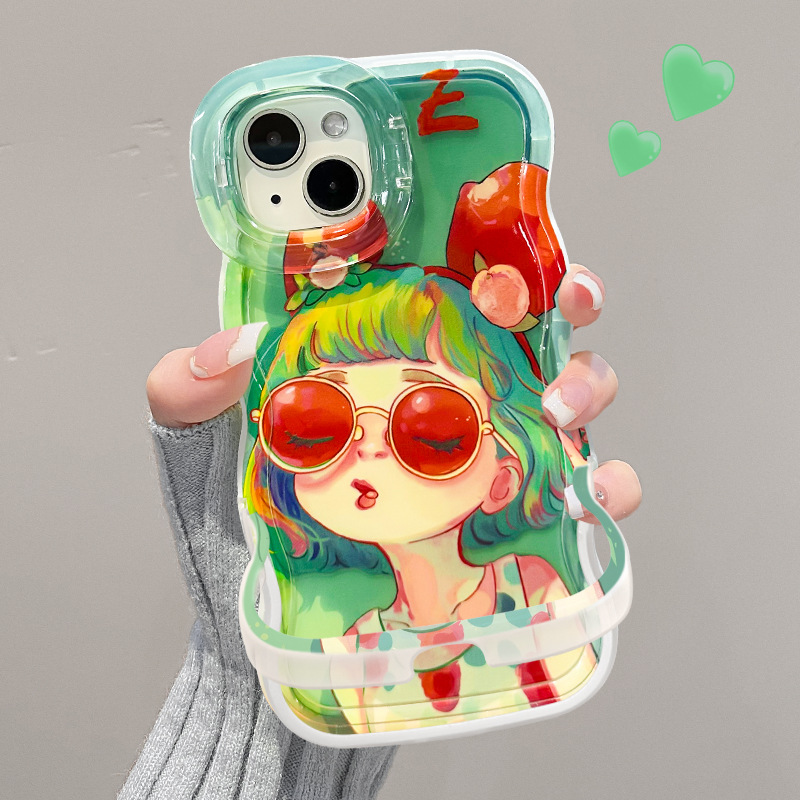 油絵サングラスの女の子はリンゴ16promax携帯ケース13夏ドーパミン15ゼリー14かわいい12