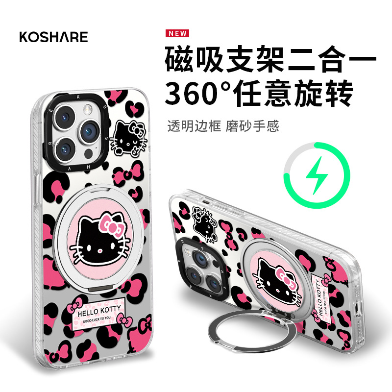 適用アップル16promax携帯ケース13磁気吸引支点スタンド15豹紋kt猫14新作女性モデル11華為