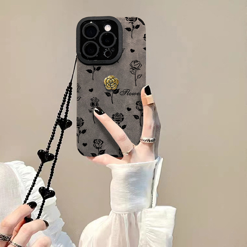 ラインのバラのブレスレットはリンゴの16proの携帯のケースを適用します。