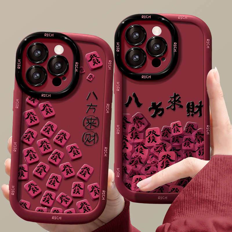 八方来財はリンゴ16proの赤い携帯ケース15小衆国風14新年の柔らかいシリコンゴムの転倒防止7/8を適用します。
