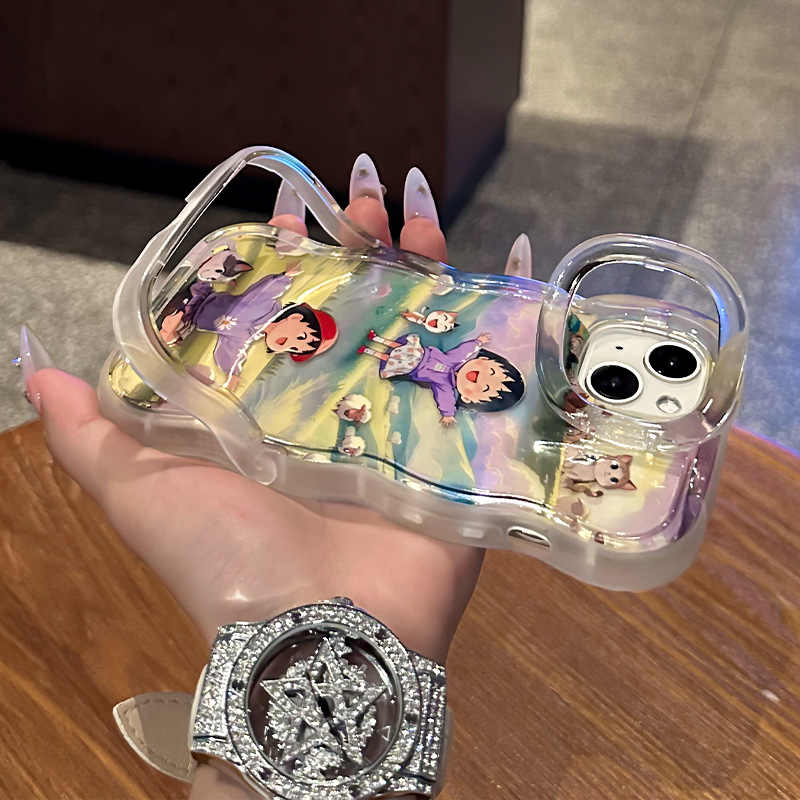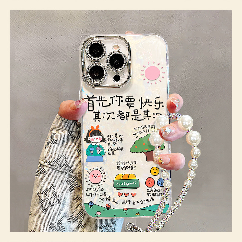 ハッピーガールスタンドブレスレット Apple 16 フェザーガーゼ携帯電話ケース 13 かわいい漫画 15promax ハイエンド