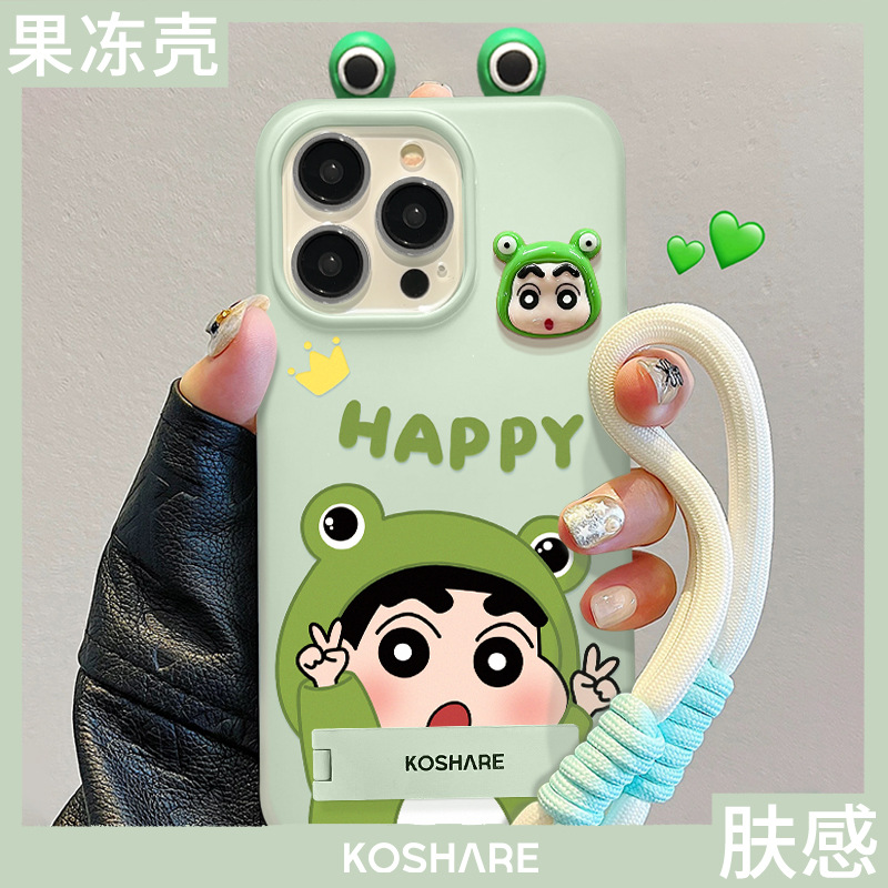 カエルの新作人形ストラップ Apple 16promax ゼリー電話ケース 13 スタンド付き 15 かわいい漫画
