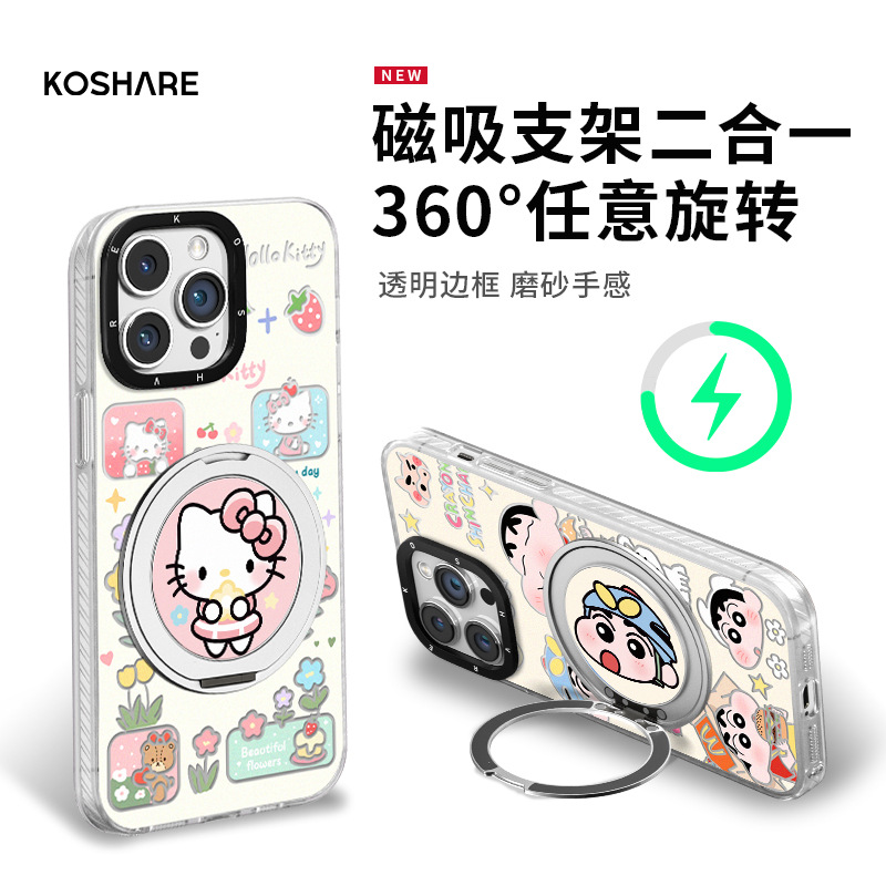 かわいいkt猫しんちゃんはリンゴ16点携帯ケース13pro回転マグネットスタンド15カップル14/12