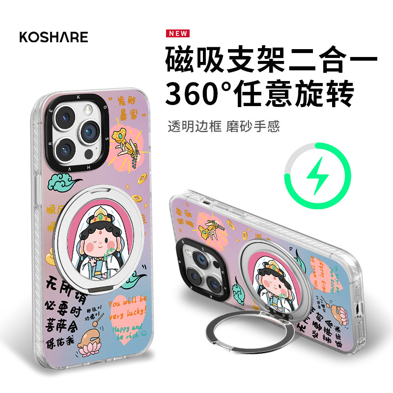 菩薩の祝福は Apple 16promax 携帯電話ケース 13 中国のトレンド 15 磁気スタンド 14 クリエイティブ 11 Huawei に適しています