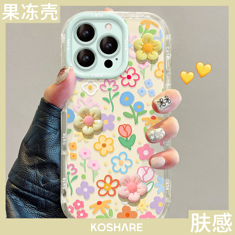 Apple 16 ゼリークリーム携帯電話ケース 13pro ドーパミン 15 細穴落下防止に適した小さな新鮮な花柄人形