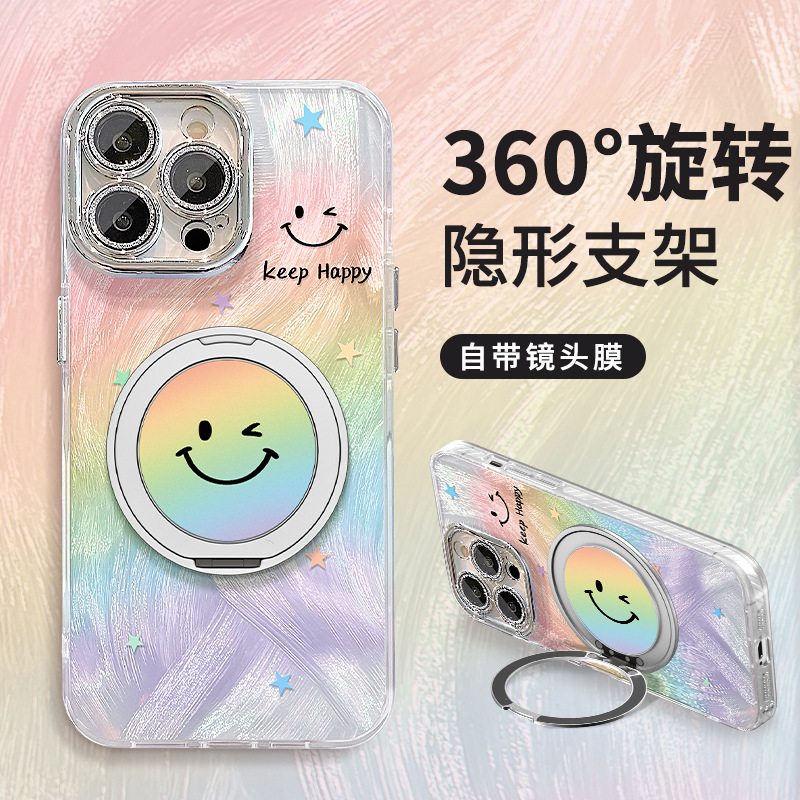 虹の笑顔の支点の支柱はリンゴの16羽の糸の携帯の箱の13promaxの全包みのレンズの膜の15高級を適用します。