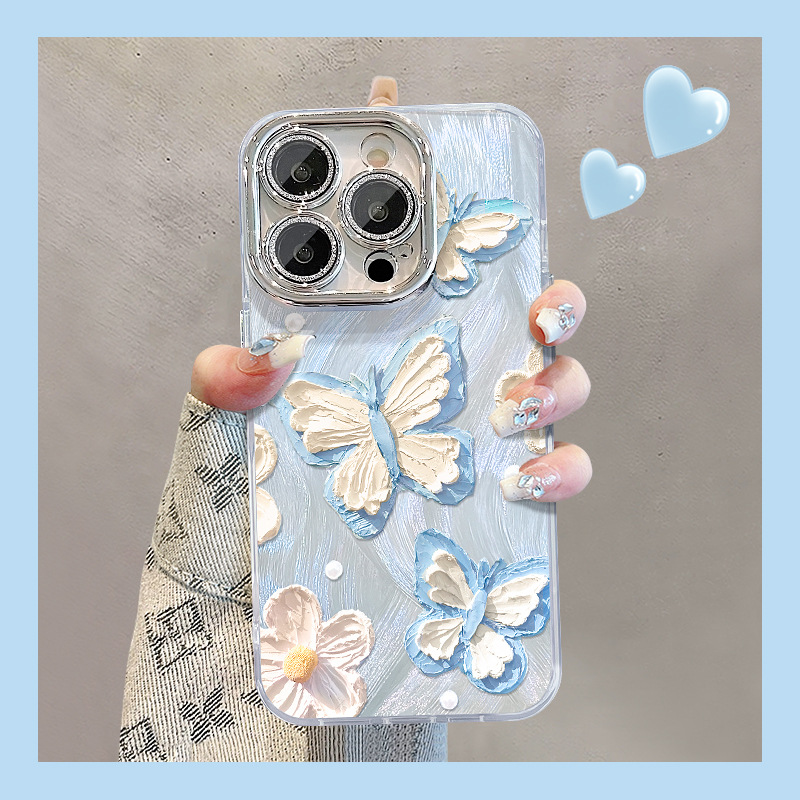 油絵蝶 iphone16 apple 15promax 携帯電話ケース 13 美しい羽糸 14 高級感のある女の子に適しています