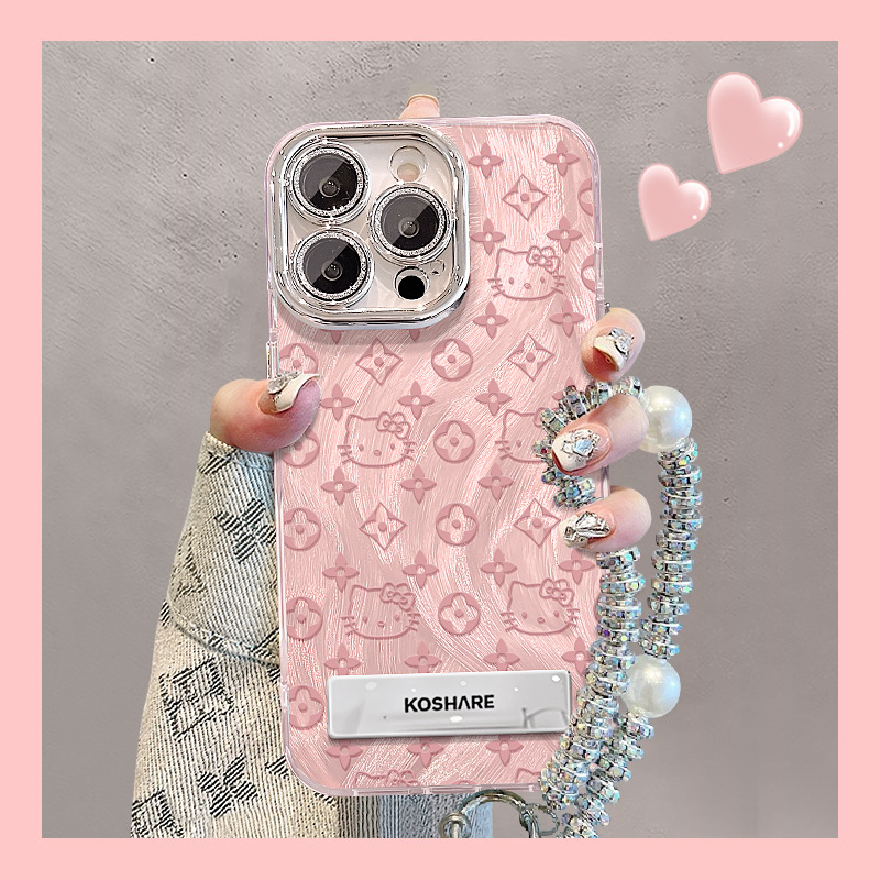 kt猫スタンド付きブレスレット、Apple 16、羽根糸のスマホケース、13promax、Huawei 15、可愛い、14、高級感、17対応