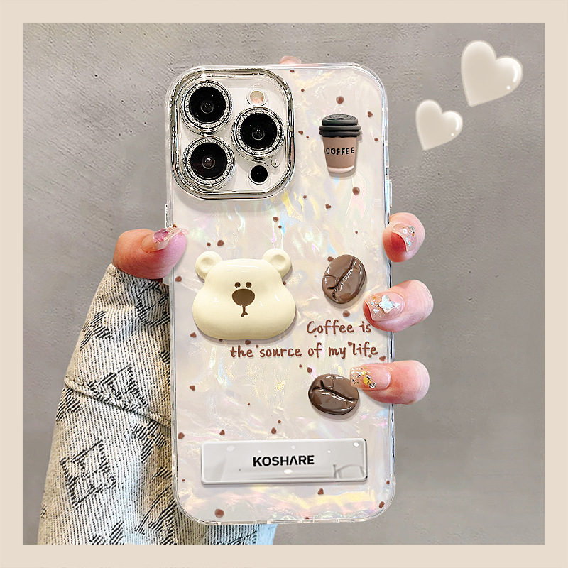 アップル16promax携帯ケース13コーヒー熊公仔スタンド15かわいい14高級感11華為