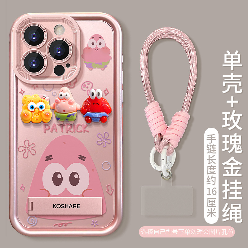 派大星公仔スタンドストラップはアップル16携帯ケース15proかわいいアニメ13フロストシリコン14を適用している