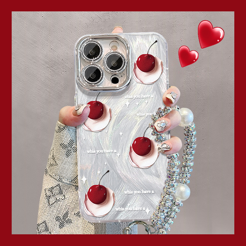 チェリースタンドブレスレット Apple 16promax フェザーガーゼ携帯電話ケース 15 ハイエンド 13 ニッチ 14 Huawei 11 に適しています