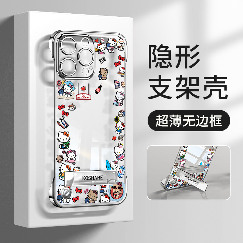 取り巻きkt猫スタンド适用アップル13透明スマホケース16proメッキフレームレス15高级感14女