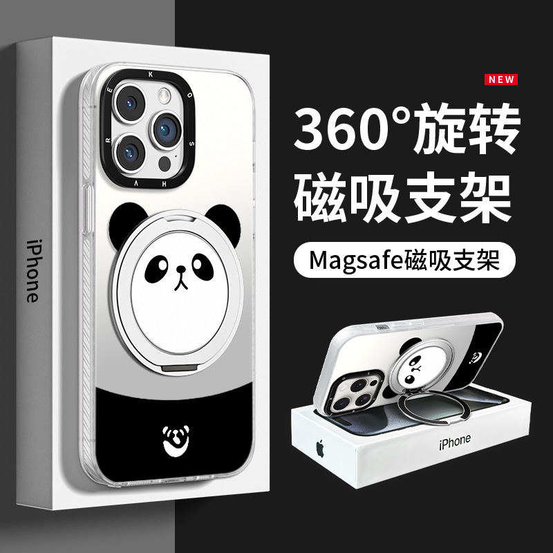 かわいいパンダはリンゴ16promax携帯ケース13カップル華為15磁気吸引支点スタンド14粟を適用している
