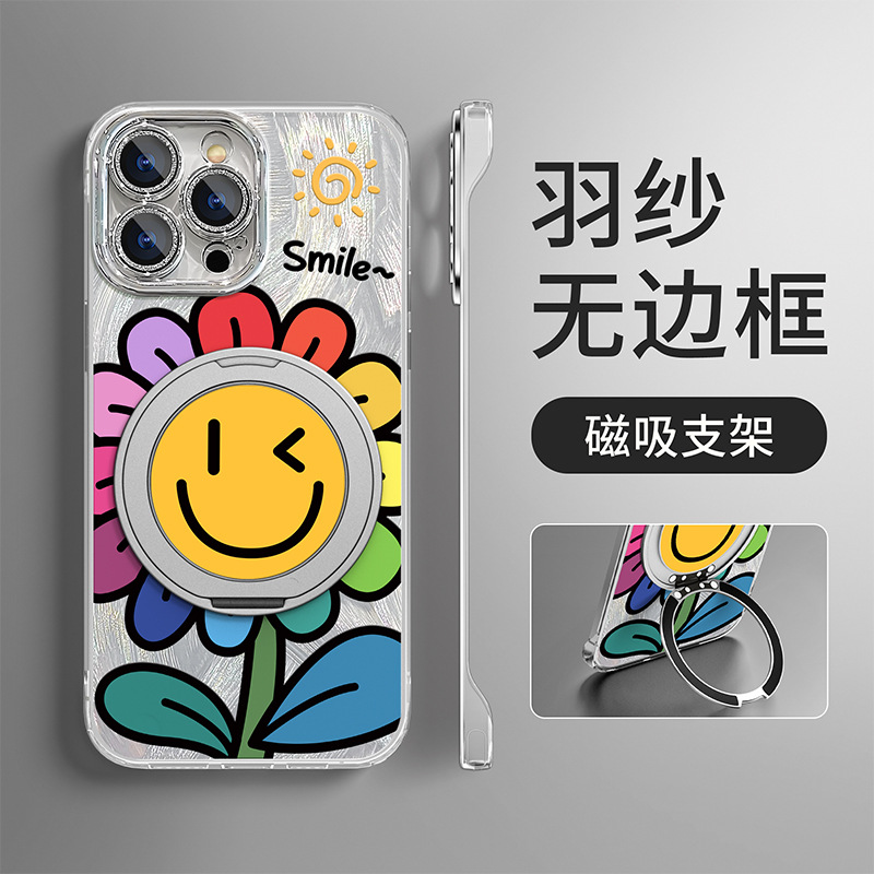 太陽花磁気吸引スタンドはリンゴ16羽紗無枠携帯ケース15pro高級感13米14を適用している