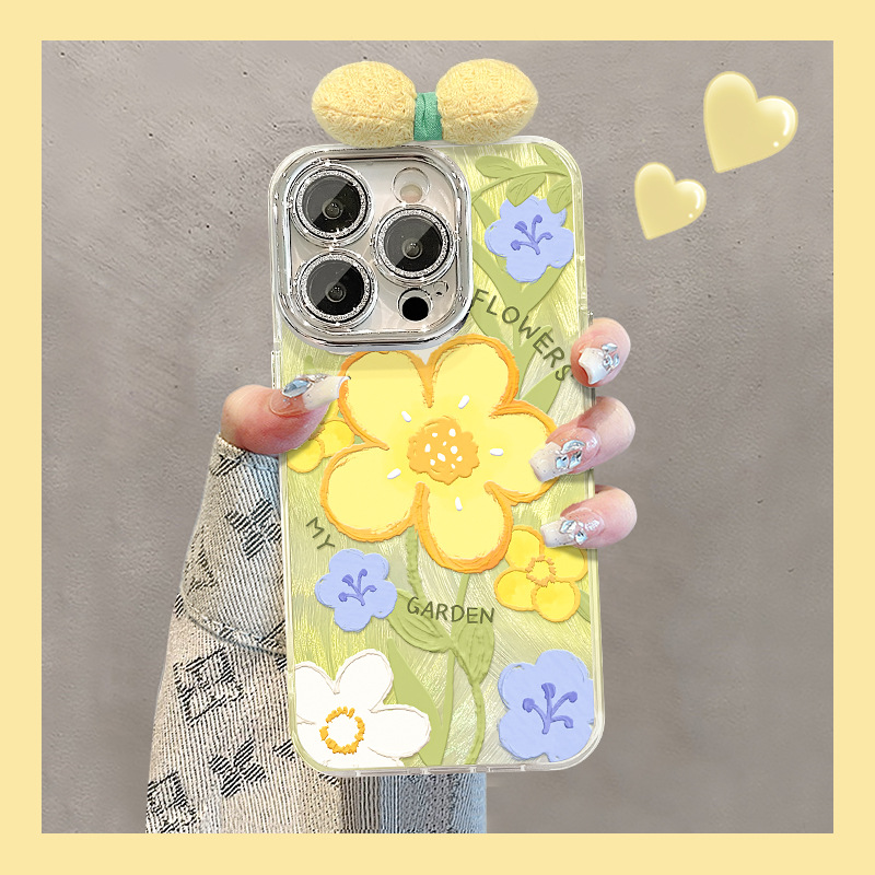 油絵の黄色の花のブレスレットはリンゴの16羽の紗の携帯の箱の15proの蝶結びの公の子の13の支柱の14を適用して投げます。