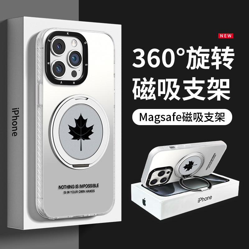 シンプルなカエデの葉はリンゴの16本の携帯ケースの米14pro磁気吸引スタンド15華は13高級感がある