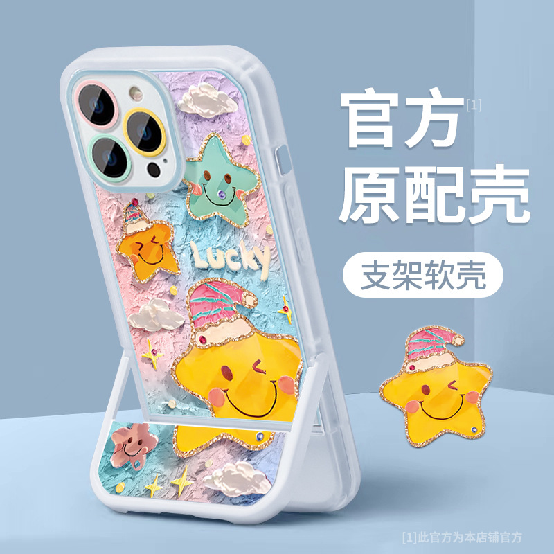 Apple 13promax 携帯電話ケース Xiaomi 15 目に見えないスタンド 16 かわいい 14 シリコン落下防止に適した油絵の星