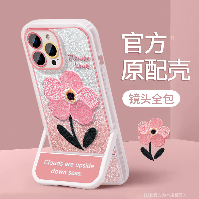 刺繍花はリンゴ16携帯ケース15promaxコンタクトレンズ13フラッシュ粉14シリコン12保護カバーを適用する