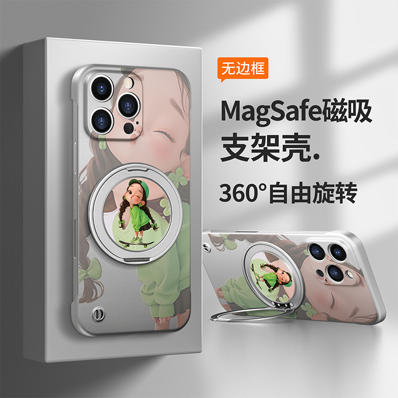 スケートボードの女の子はリンゴ13の縁なしの携帯電話ケース華為mate60pro回転磁気吸引スタンド15/14を適用している
