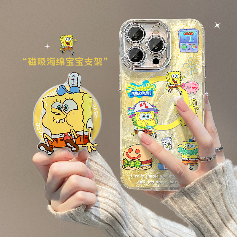 スポンジ赤ちゃん磁気吸引スタンドはリンゴ13携帯ケース16pro羽紗派大星15かわいいアニメ14を適用している