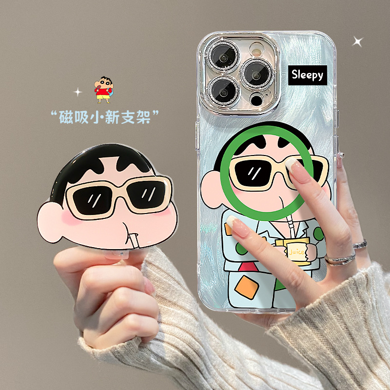 サングラスのしんちゃんのマグネットホルダーはアップル16の可愛い携帯電話のカバー15promaxアニメ13の全カバーのレンズ膜を適用します。